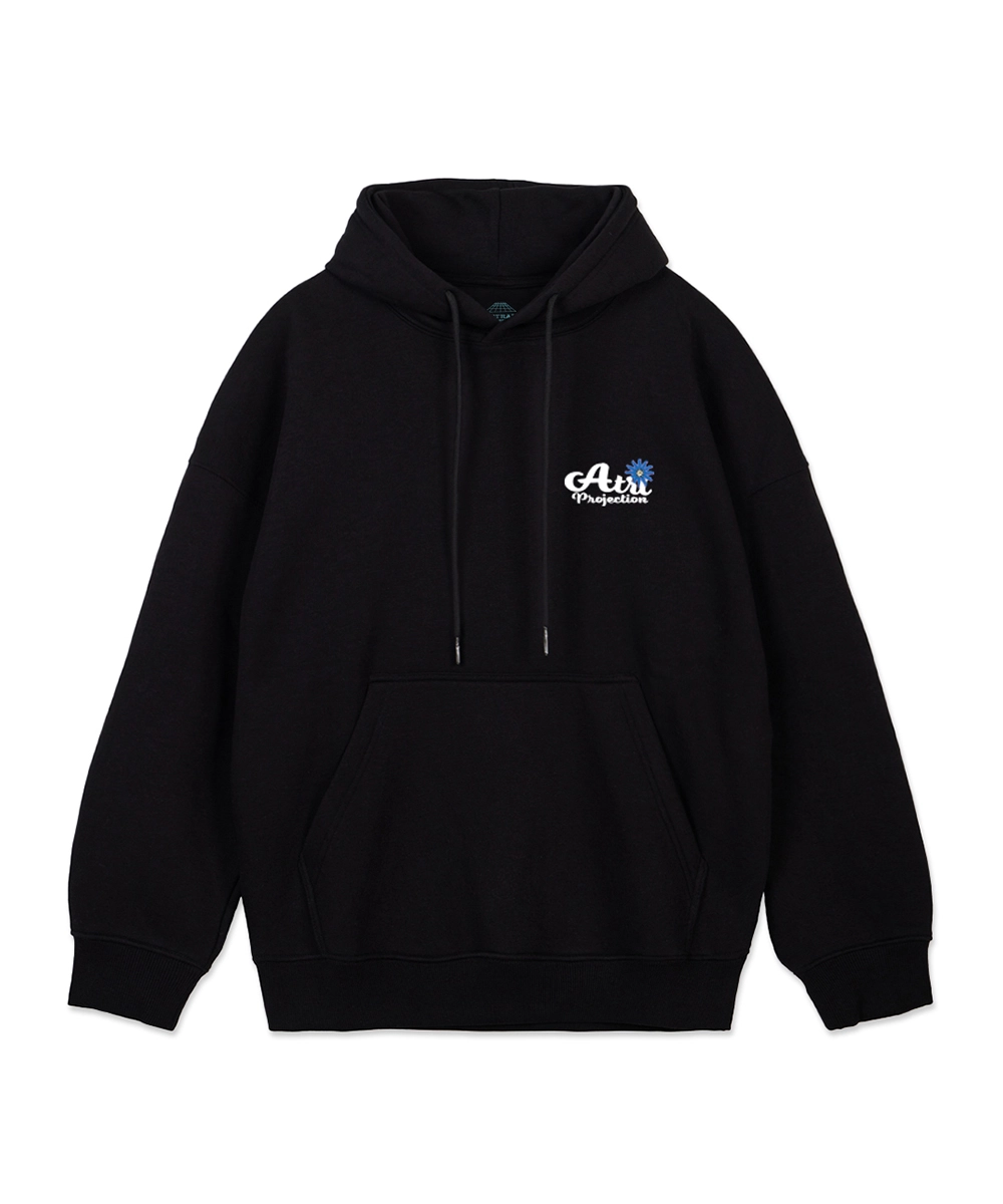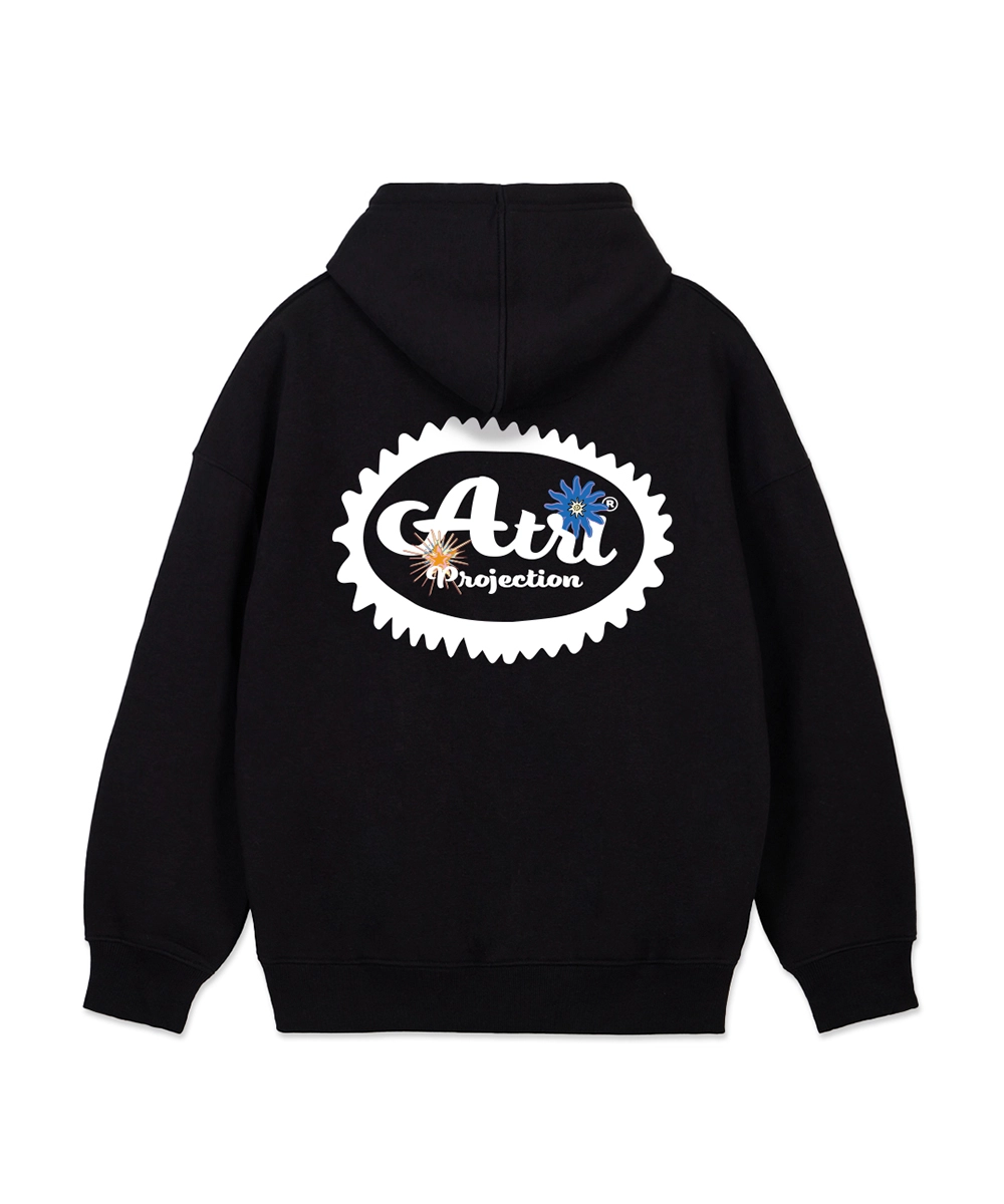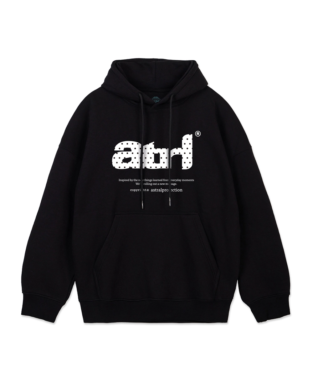 ATRL 도트 레터링 오버핏 와이드 숄더 후디_블랙