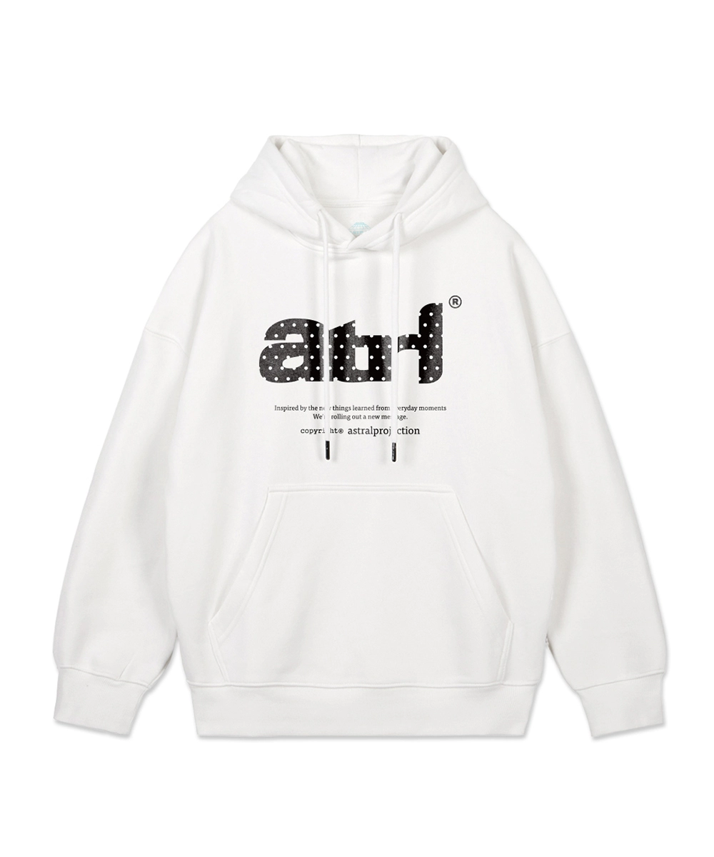 ATRL 도트 레터링 오버핏 와이드 숄더 후디_화이트