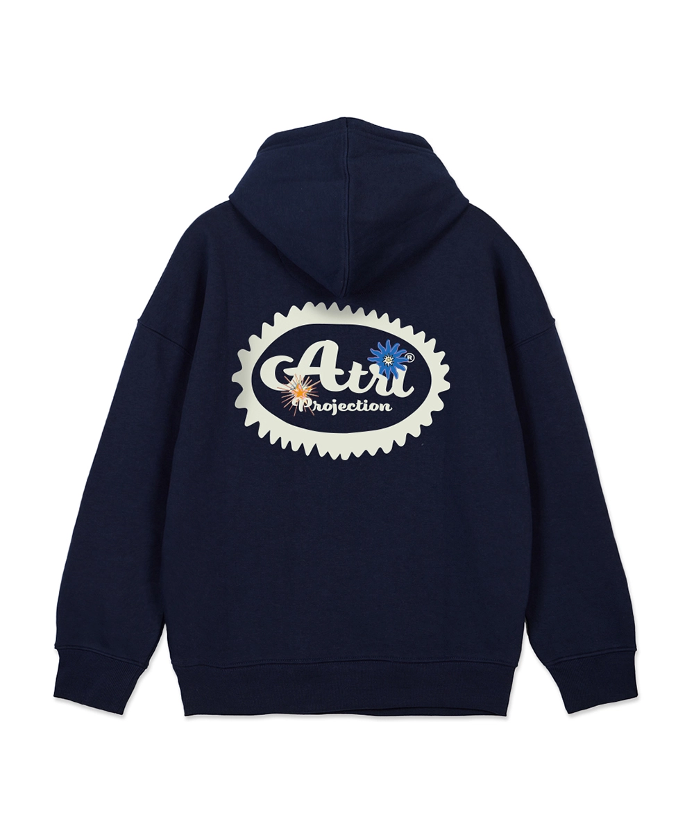 ATRL 도트 레터링 오버핏 와이드 숄더 후디_네이비