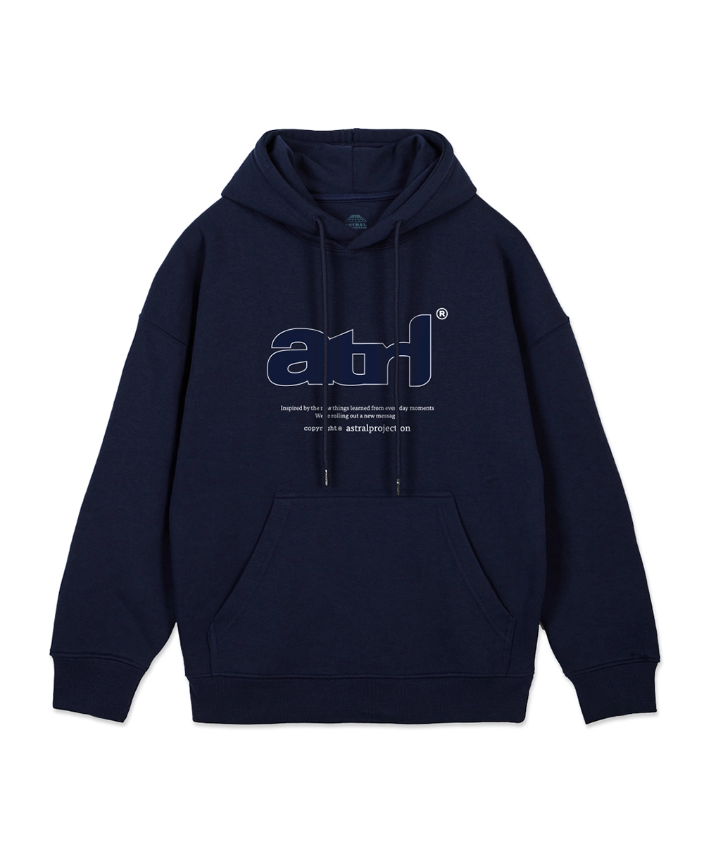 ATRL 베이직 레터링2 오버핏 와이드 숄더 후디_네이비