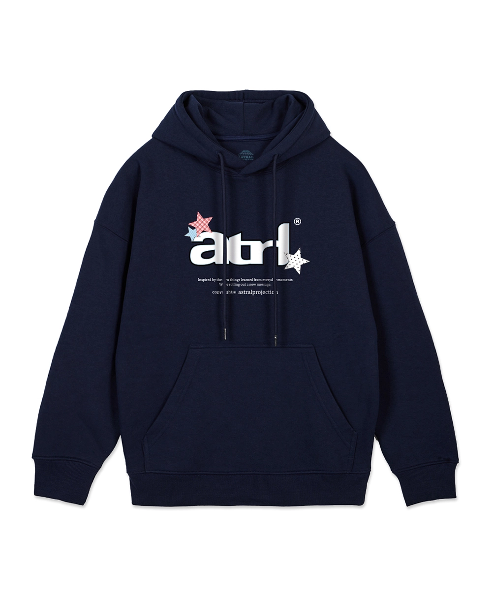 ATRL 스타 레터링 오버핏 와이드 숄더 후디_네이비