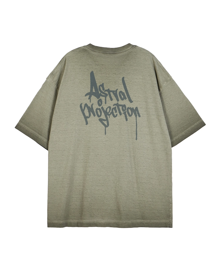 그래피티 레터링 피그먼트 루즈핏 반팔 티셔츠_카키
