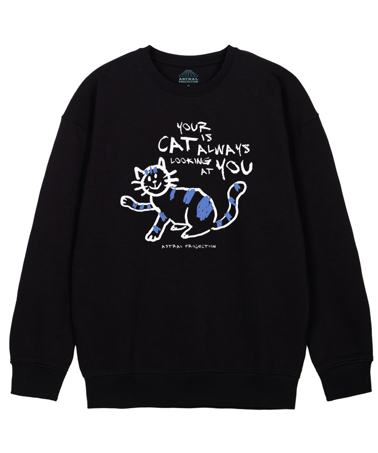 두들캣 루즈핏 기모 맨투맨_블랙