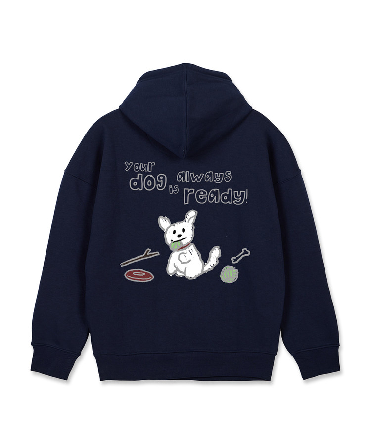 두들 퍼피 오버핏 와이드 숄더 후디_네이비