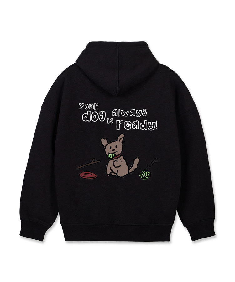 두들 퍼피 오버핏 와이드 숄더 후디_블랙