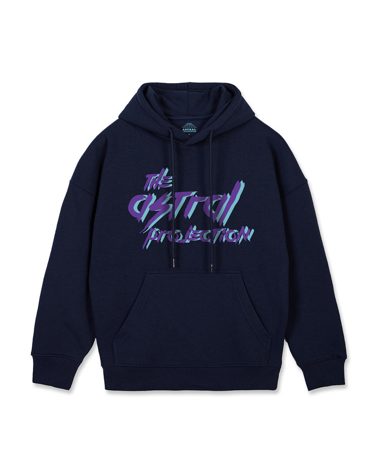 펑크 레터링 오버핏 와이드 숄더 후디_네이비