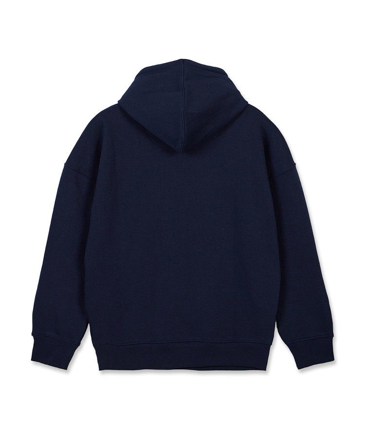 트라이앵글 로고 오버핏 와이드 숄더 후디_네이비