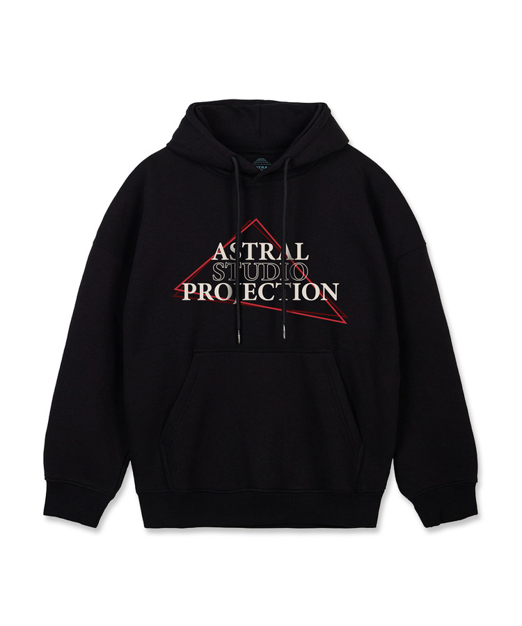 트라이앵글 로고 오버핏 와이드 숄더 후디_블랙