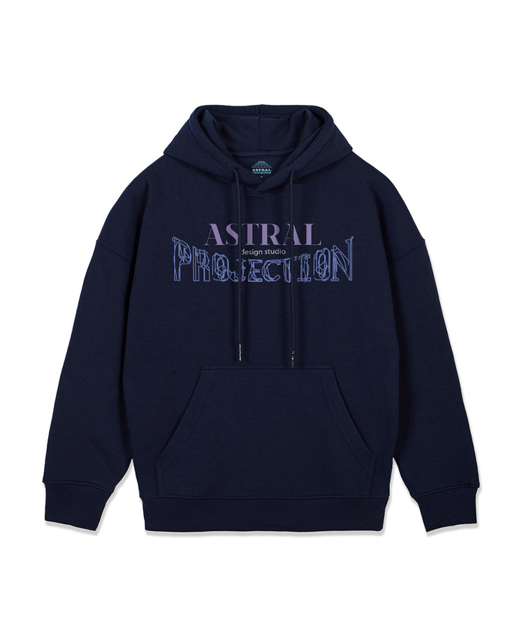 아치 로고 오버핏 와이드 숄더 후디_네이비
