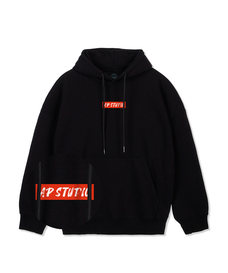 에이피 스튜디오 오버핏 와이드 숄더 후디_블랙