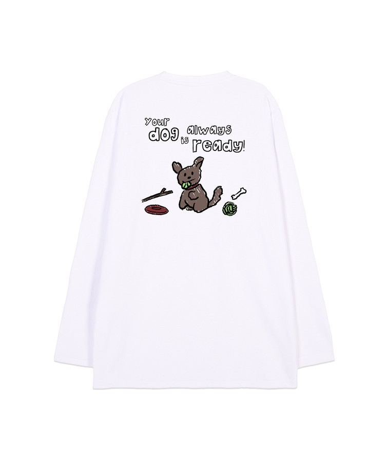 두들 퍼피 오버핏 롱 슬리브 티셔츠_화이트