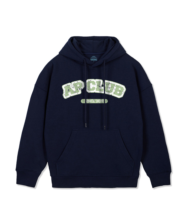 에이피 클럽 오버핏 와이드 숄더 후디_네이비