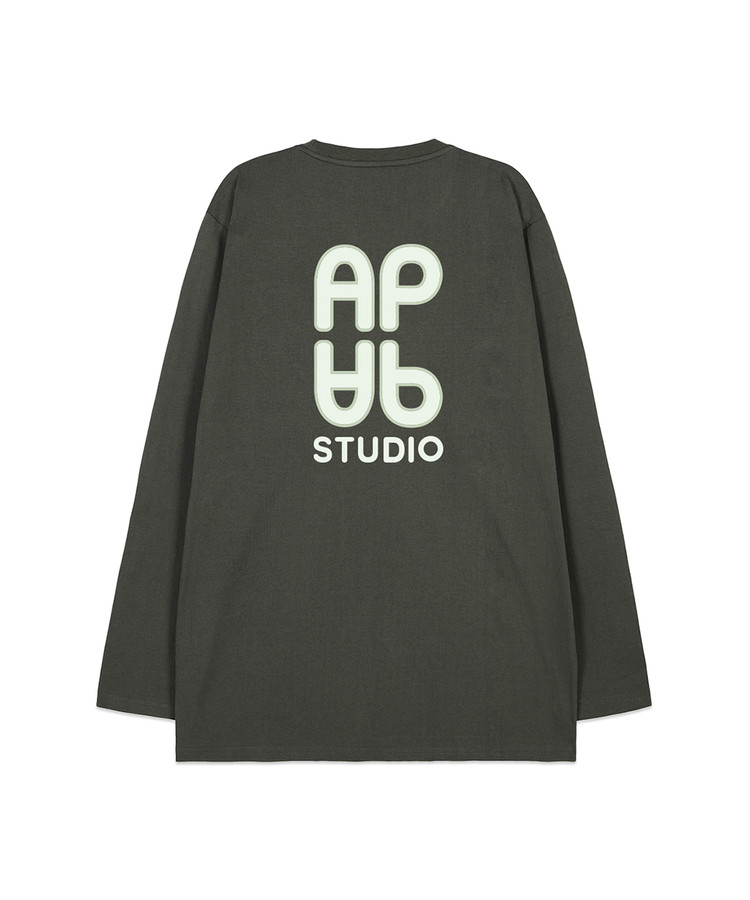 에이피 에이피 오버핏 롱 슬리브 티셔츠_카키