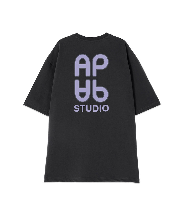 [오버핏]에이피 에이피 13수 면 라운드 넥 반팔 티셔츠_차콜