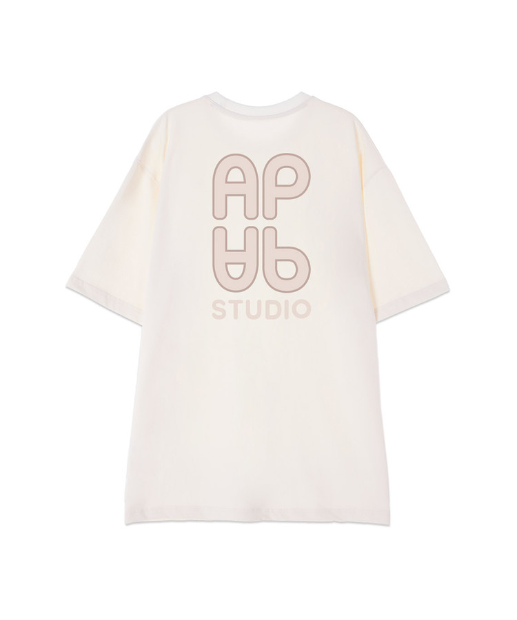 [오버핏]에이피 에이피 13수 면 라운드 넥 반팔 티셔츠_아이보리