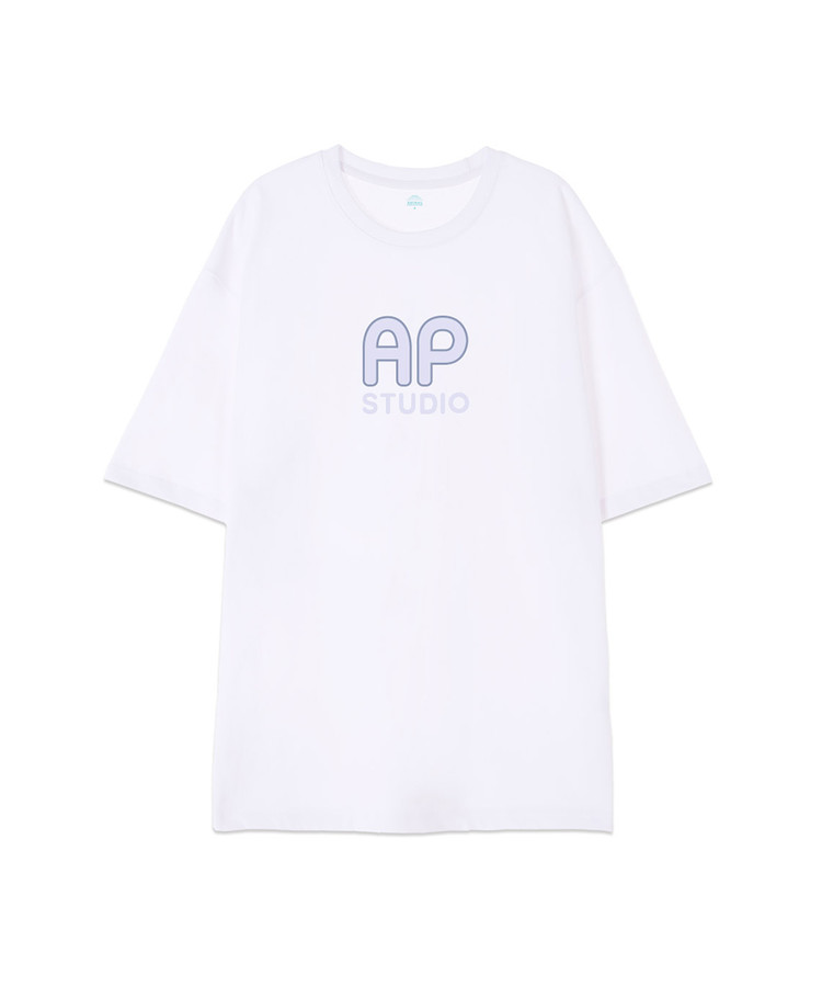 [오버핏]에이피 에이피 13수 면 라운드 넥 반팔 티셔츠_화이트