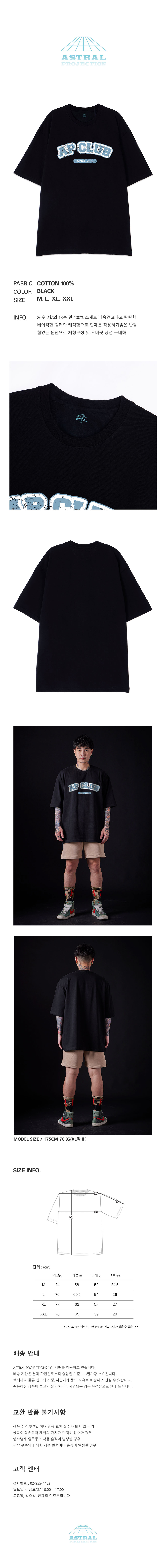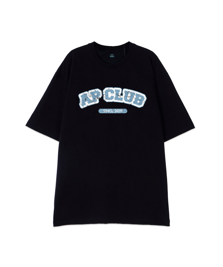 [오버핏]에이피 클럽 13수 면 라운드 넥 반팔 티셔츠_블랙