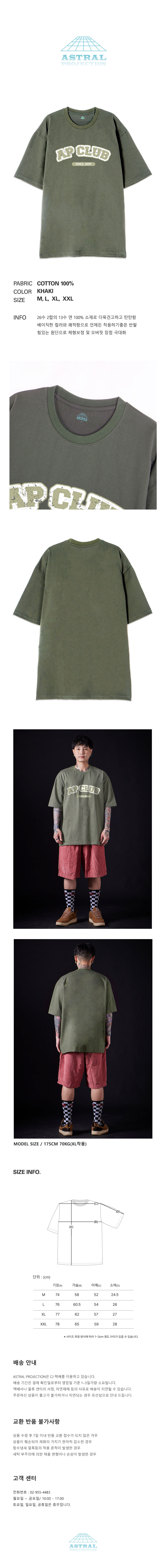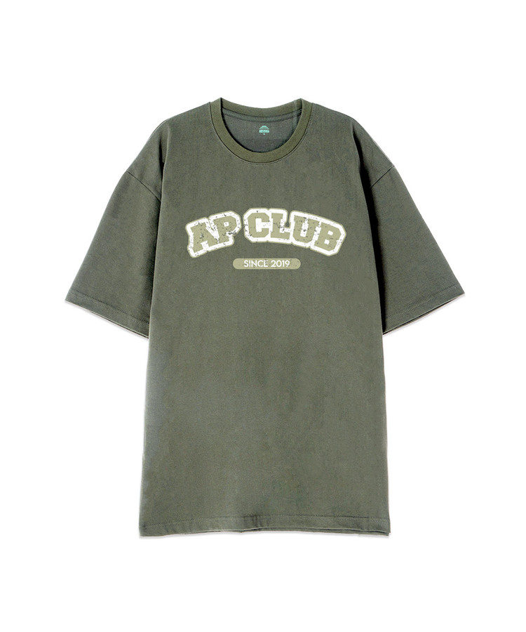 [오버핏]에이피 클럽 13수 면 라운드 넥 반팔 티셔츠_카키