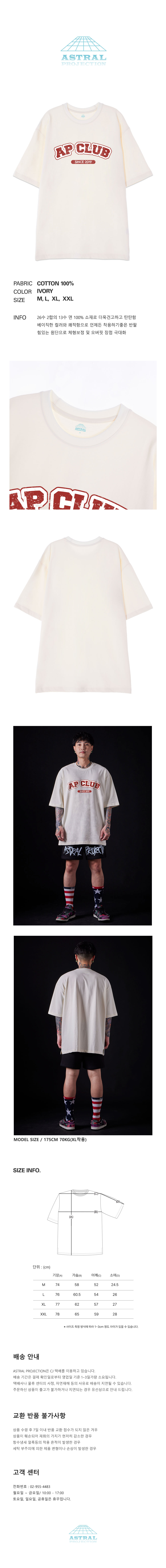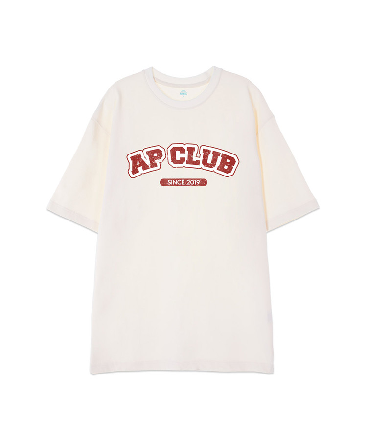 [오버핏]에이피 클럽 13수 면 라운드 넥 반팔 티셔츠_아이보리