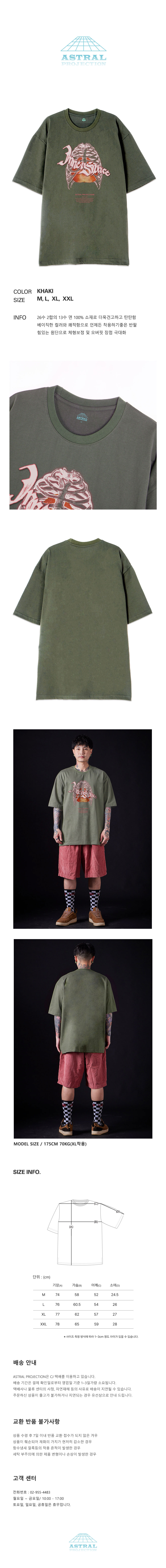 [오버핏]이너 스페이스 13수 면 라운드 넥 반팔 티셔츠_카키