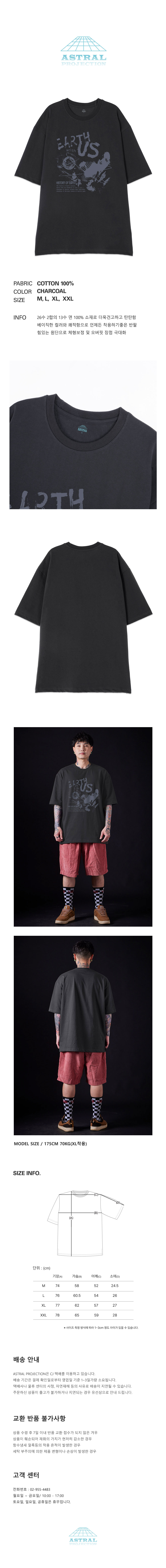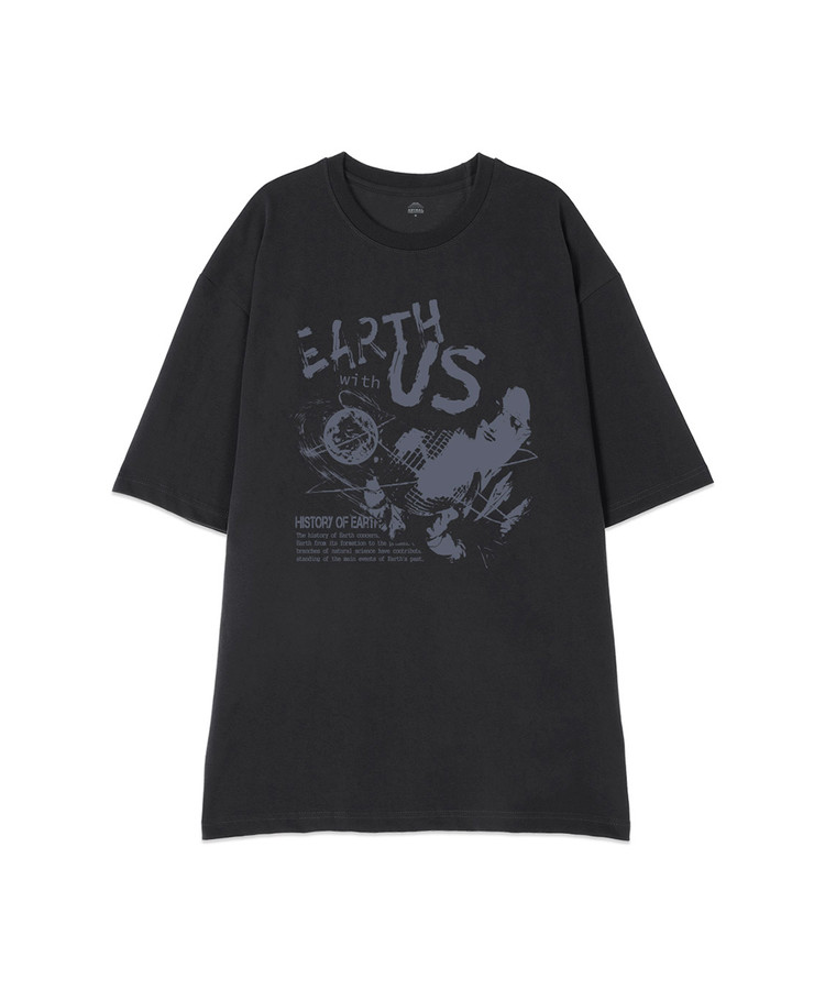 [오버핏]어스 위드 어스 13수 면 라운드 넥 반팔 티셔츠_차콜