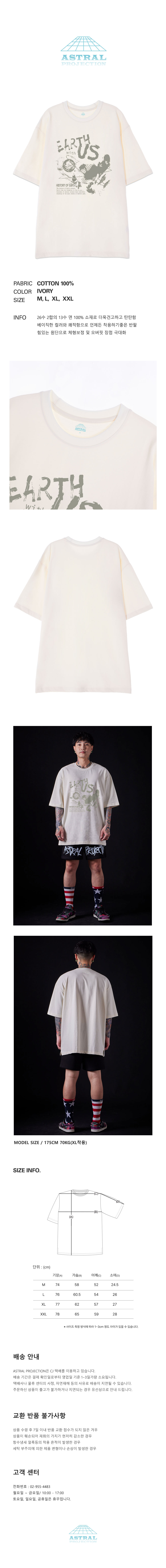 [오버핏]어스 위드 어스 13수 면 라운드 넥 반팔 티셔츠_아이보리