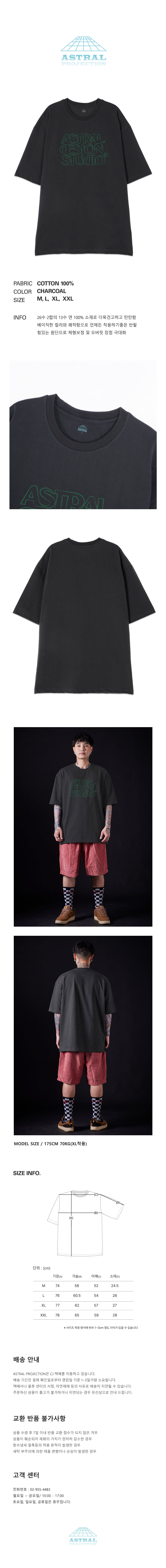 [오버핏]아스트랄 디자인 스튜디오2 13수 면 라운드 넥 반팔 티셔츠_차콜
