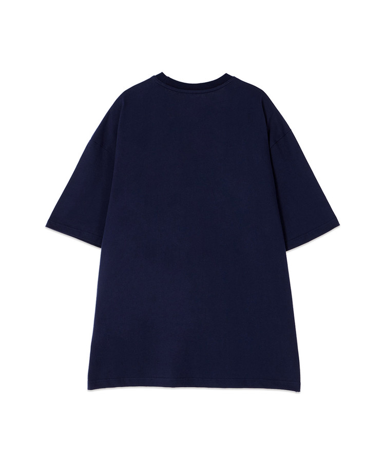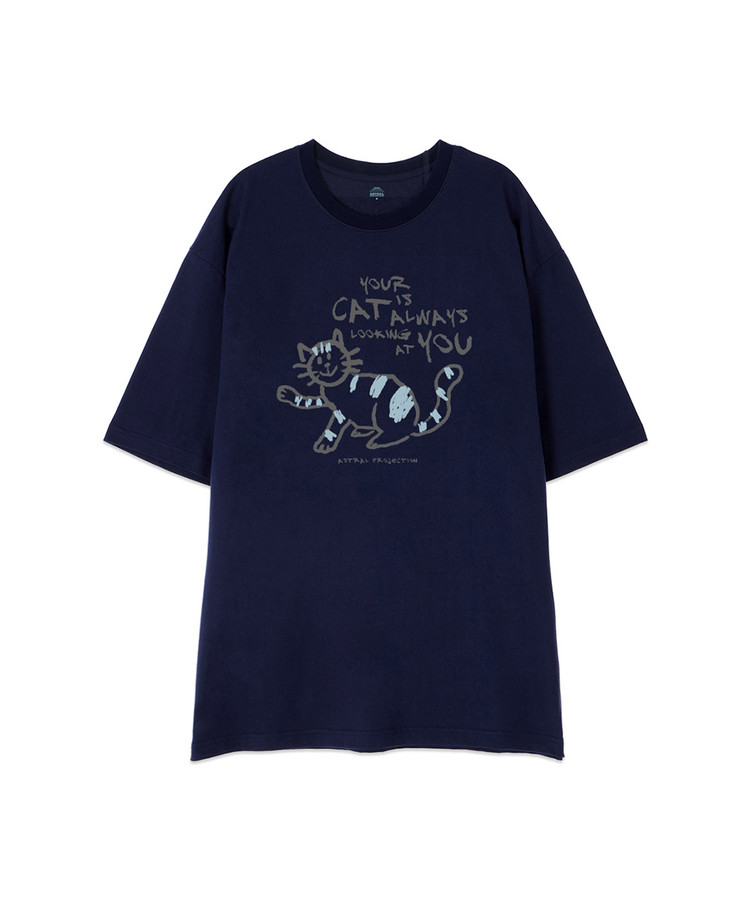 [오버핏]두들 캣 13수 면 라운드 넥 반팔 티셔츠_네이비
