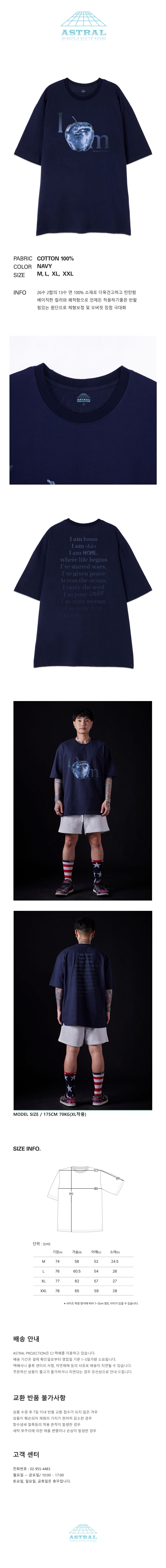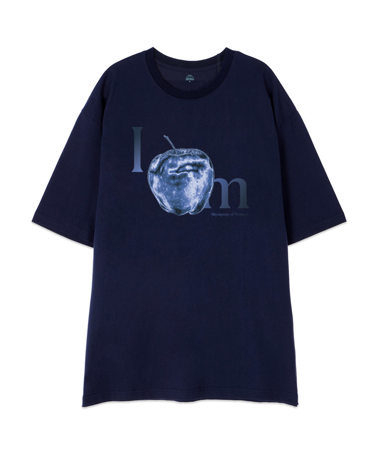 [오버핏]애플 13수 면 라운드 넥 반팔 티셔츠_네이비