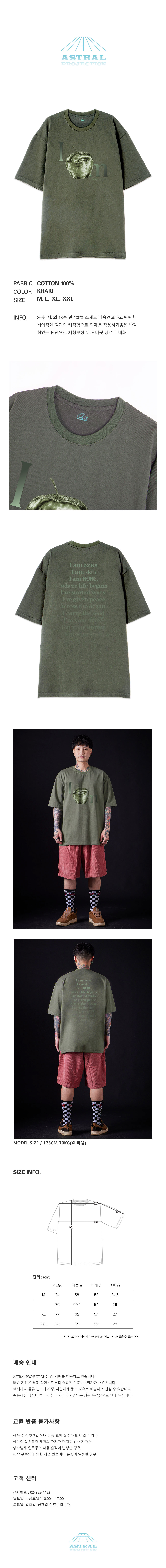 [오버핏]애플 13수 면 라운드 넥 반팔 티셔츠_카키