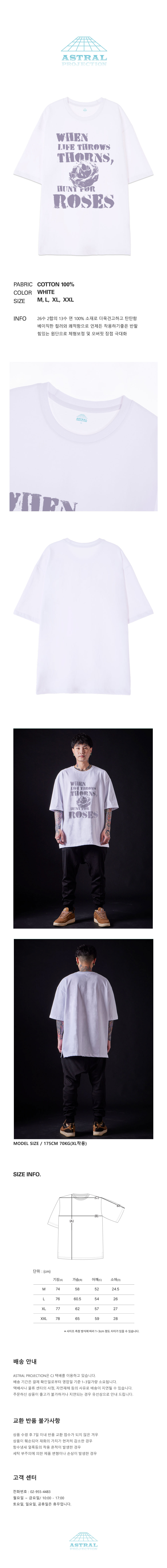 [오버핏]로즈 13수 면 라운드 넥 반팔 티셔츠_화이트