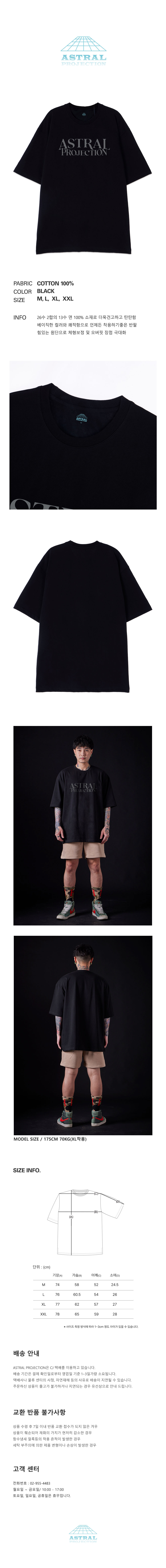 [오버핏]베이직 레터링 13수 면 라운드 넥 반팔 티셔츠_블랙