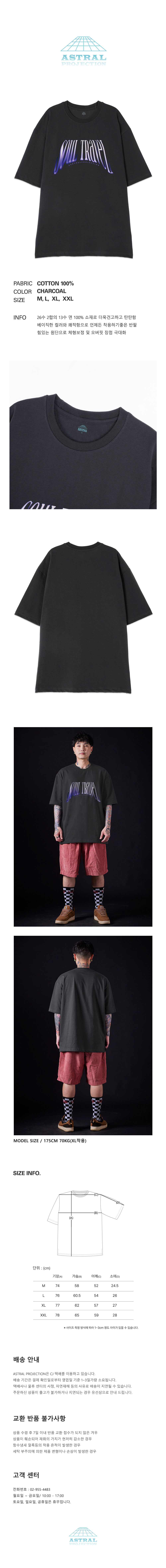[오버핏]소울 트레블 13수 면 라운드 넥 반팔 티셔츠_차콜