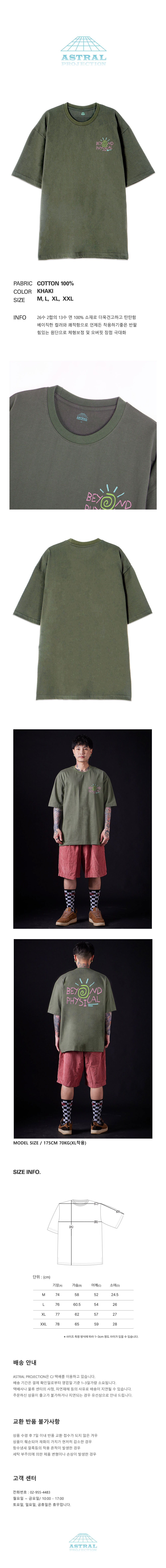 [오버핏]비욘드 피지컬 13수 면 라운드 넥 반팔 티셔츠_카키