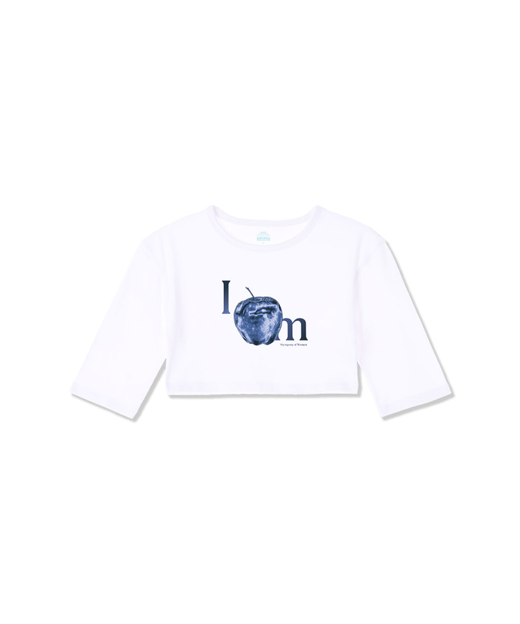 애플 수피마 스판 5부 소매 숏 크롭티_화이트