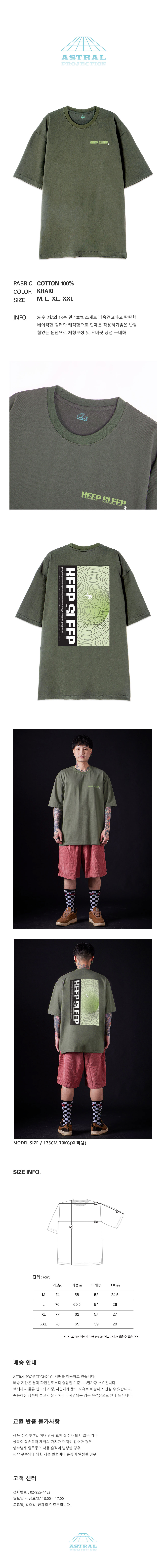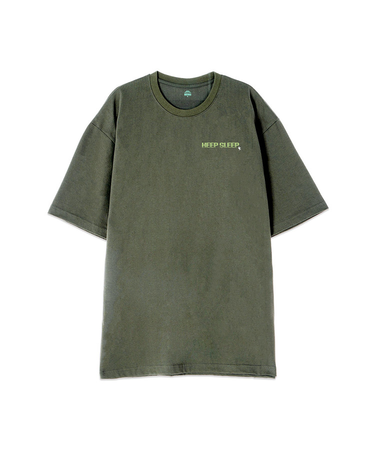 [오버핏]킵 슬립 13수 면 라운드 넥 반팔 티셔츠_카키