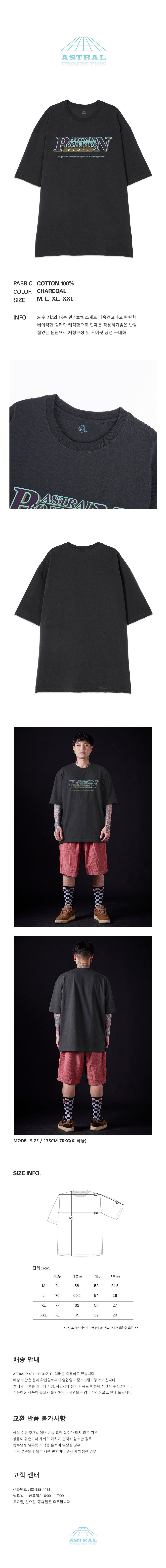 [오버핏]피앤 타임즈 13수 면 라운드 넥 반팔 티셔츠_차콜
