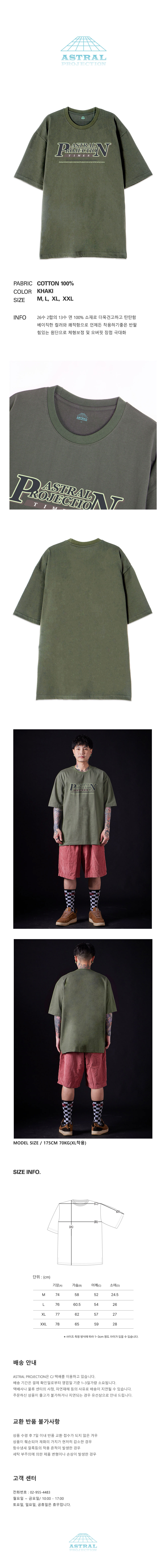 [오버핏]피앤 타임즈 13수 면 라운드 넥 반팔 티셔츠_카키