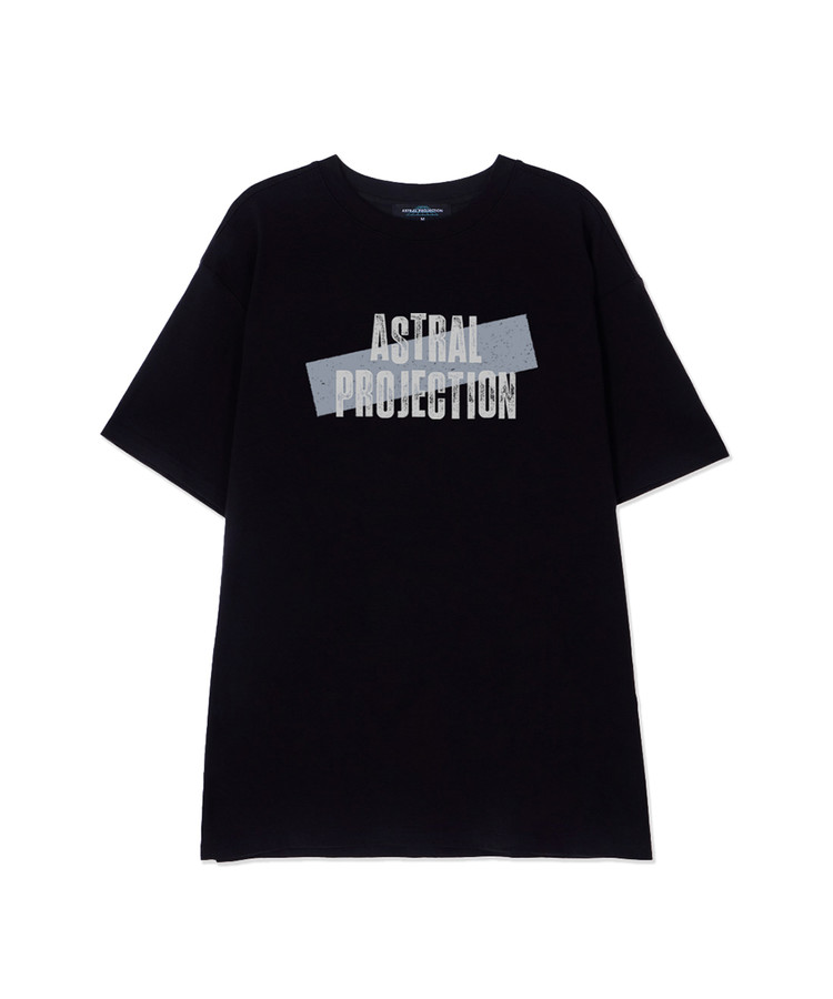 빈티지 레터링 테잎 수피마 코튼 라운드 넥 반팔 티셔츠_블랙