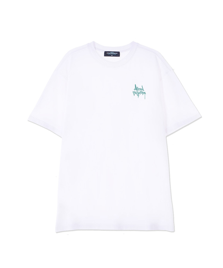 펜 그래피티 레터링 로고 수피마 코튼 라운드 넥 반팔 티셔츠_화이트
