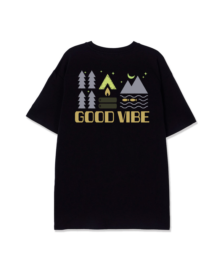 굿 바이브 수피마 코튼 라운드 넥 반팔 티셔츠_블랙