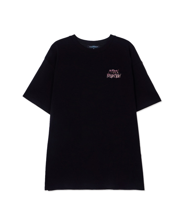 마블 그래피티 레터링 수피마 코튼 라운드 넥 반팔 티셔츠_블랙