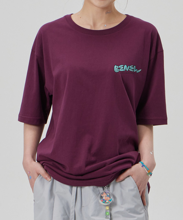 [비 뉴]코튼 루즈핏 반팔 티셔츠_플럼 퍼플