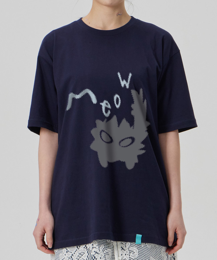 [미유 캣]코튼 루즈핏 반팔 티셔츠_스페이스 네이비