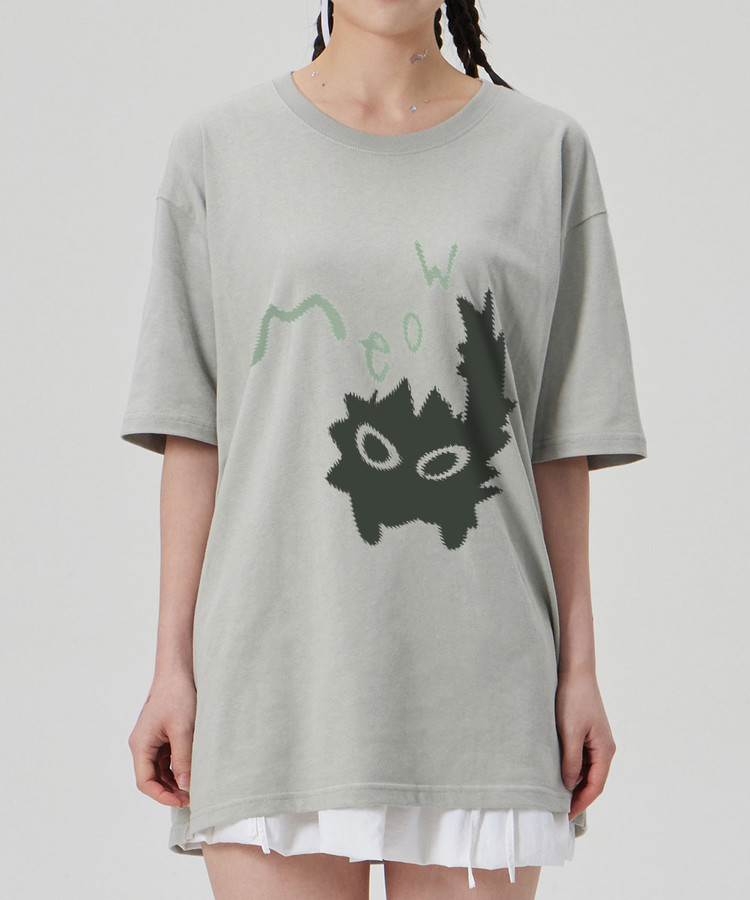 [미유 캣]코튼 루즈핏 반팔 티셔츠_더스티 민트