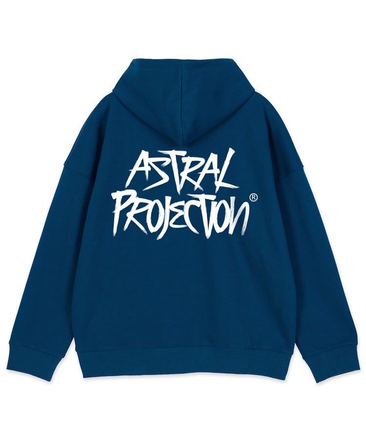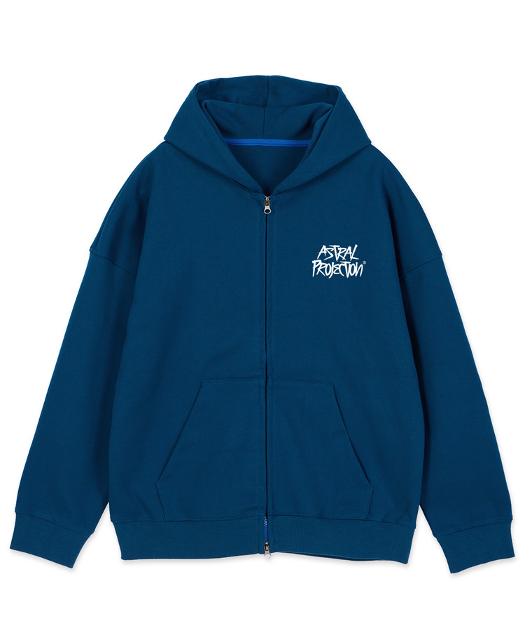 그래피티 레터링 오버핏 와이드 숄더 후드 집업_틸블루