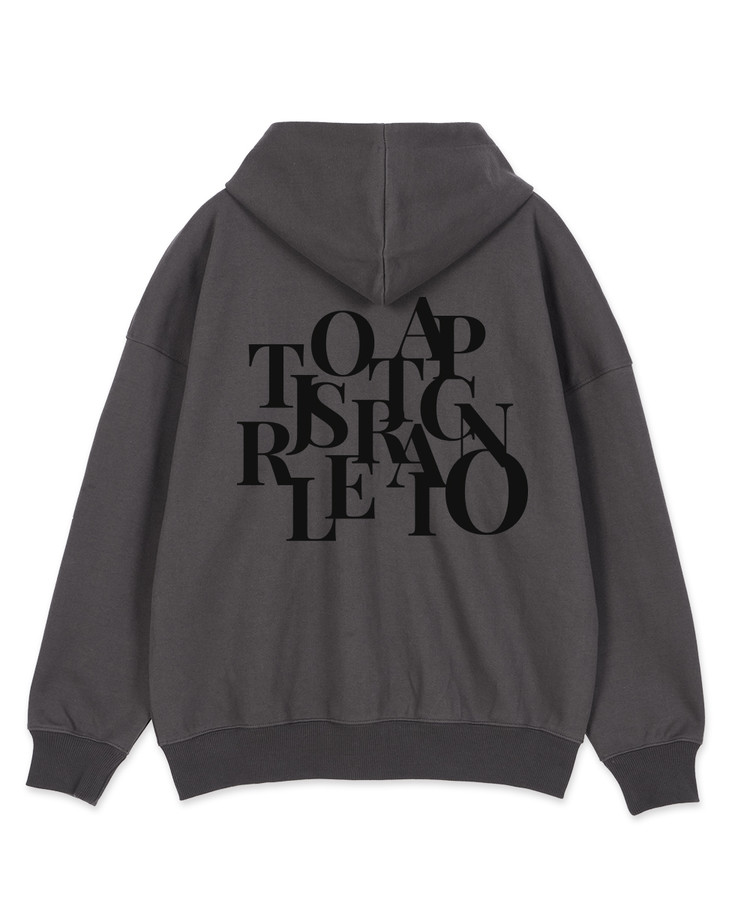빅로고 오버핏 와이드 숄더 후드 집업_차콜