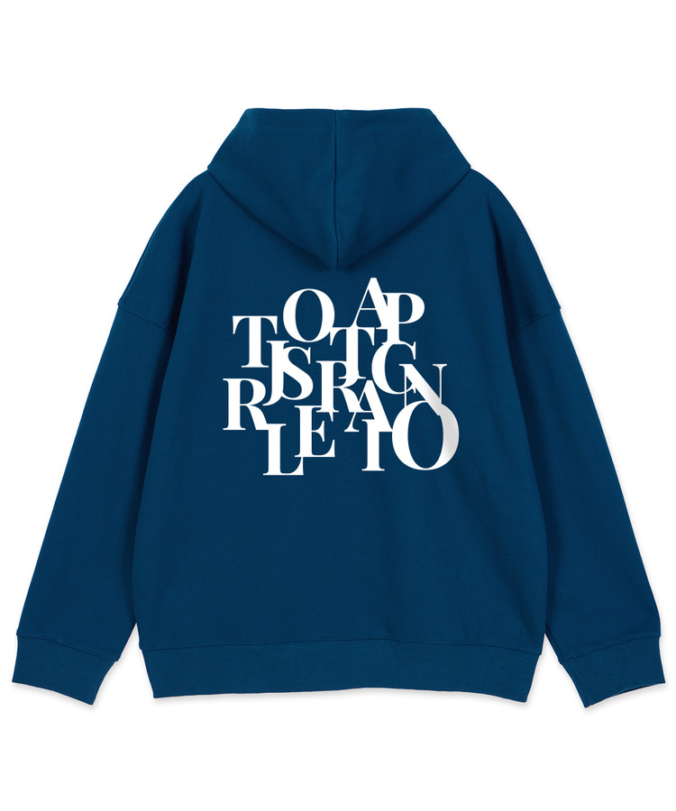 빅로고 오버핏 와이드 숄더 후드 집업_틸블루