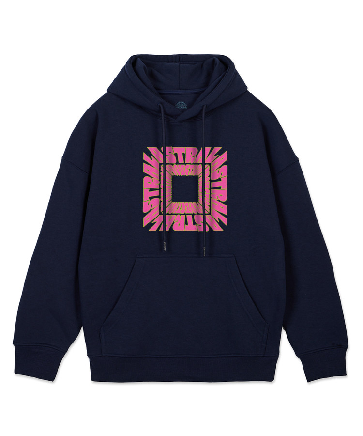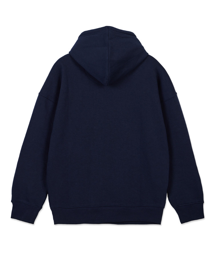 스퀘어 로고 오버핏 와이드 숄더 후디_네이비