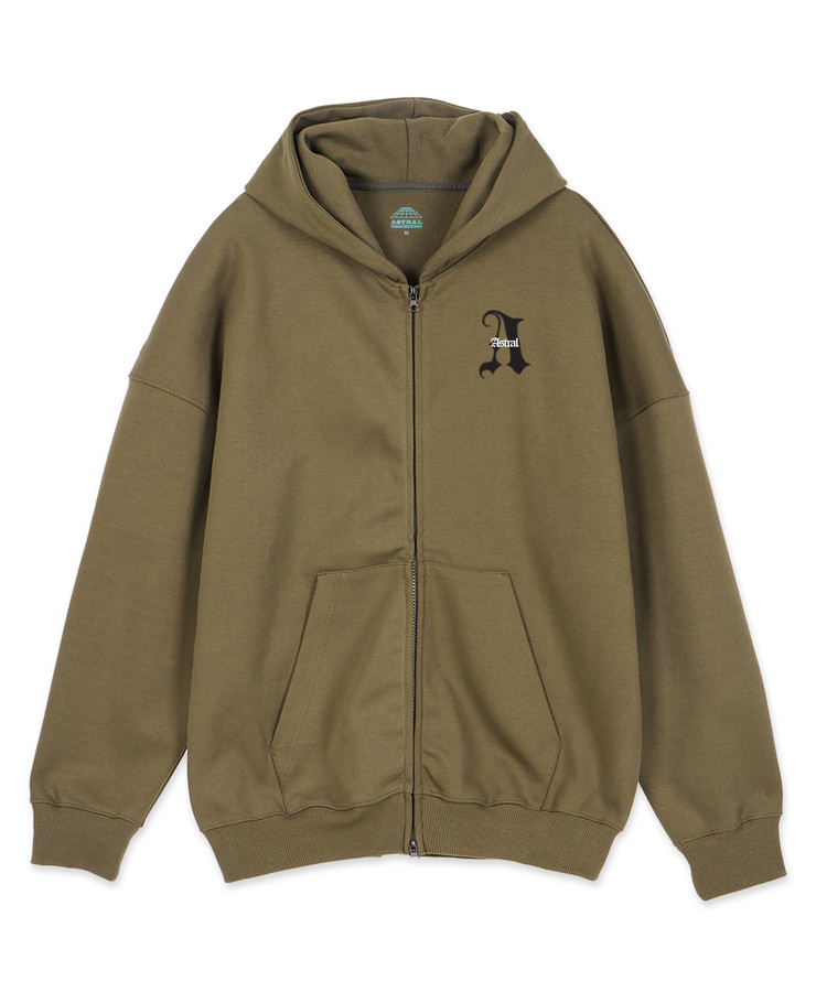 아스트랄 에이 오버핏 와이드 숄더 후드 집업_그린브라운